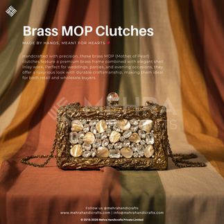 Discover the timeless charm of our Handmade Designer Brass MOP Clutch Bag—a stunning accessory that combines the luxury of brass with the shimmering beauty of Mother-of-Pearl inlays. Perfect for weddings, evening events, or special occasions, this artisanal masterpiece adds sophistication to every outfit.