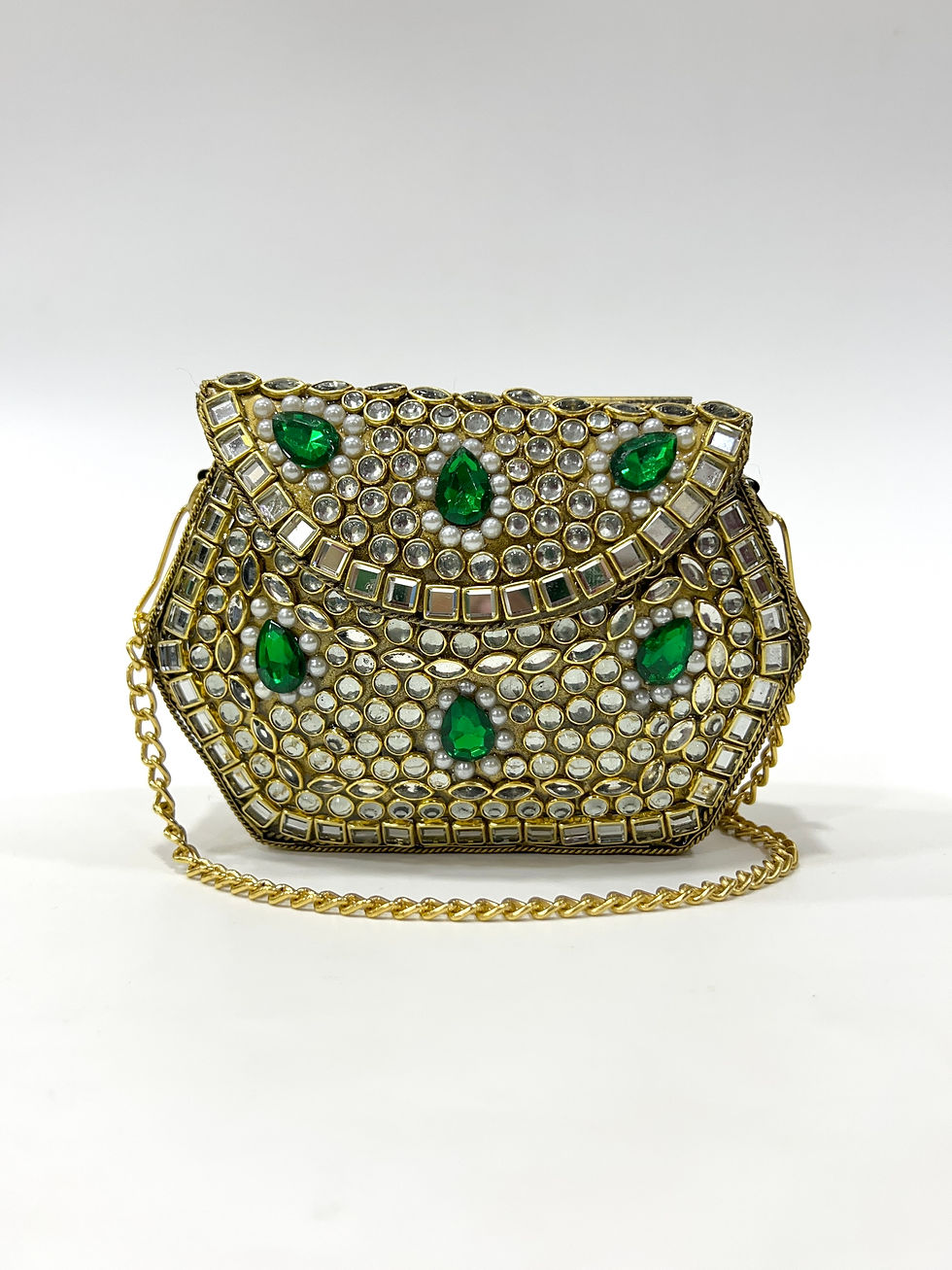 Elevate your style with our exclusive, handcrafted brass Mother of Pearl (MOP) clutches. Each piece is meticulously crafted by skilled artisans, showcasing intricate designs, vibrant patterns, and premium quality. Made with authentic brass and shimmering MOP details, these designer clutches bring together tradition and luxury, reflecting India’s rich artisanal heritage.